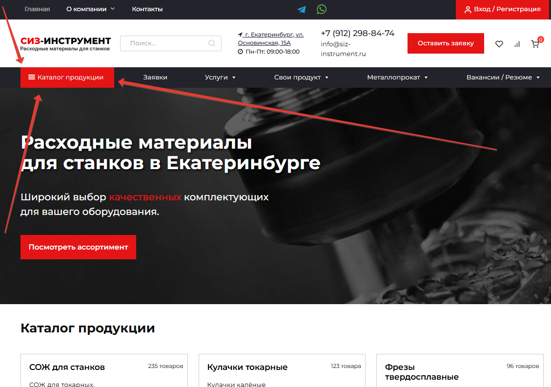 - Видно «Каталог продукции»